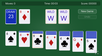 Cards are arranged into vertical columns. Only the top card of each column is playable. A draw pile counter shows how many cards remain.